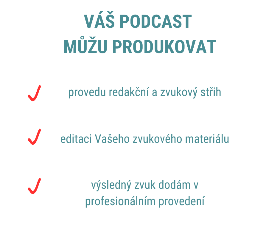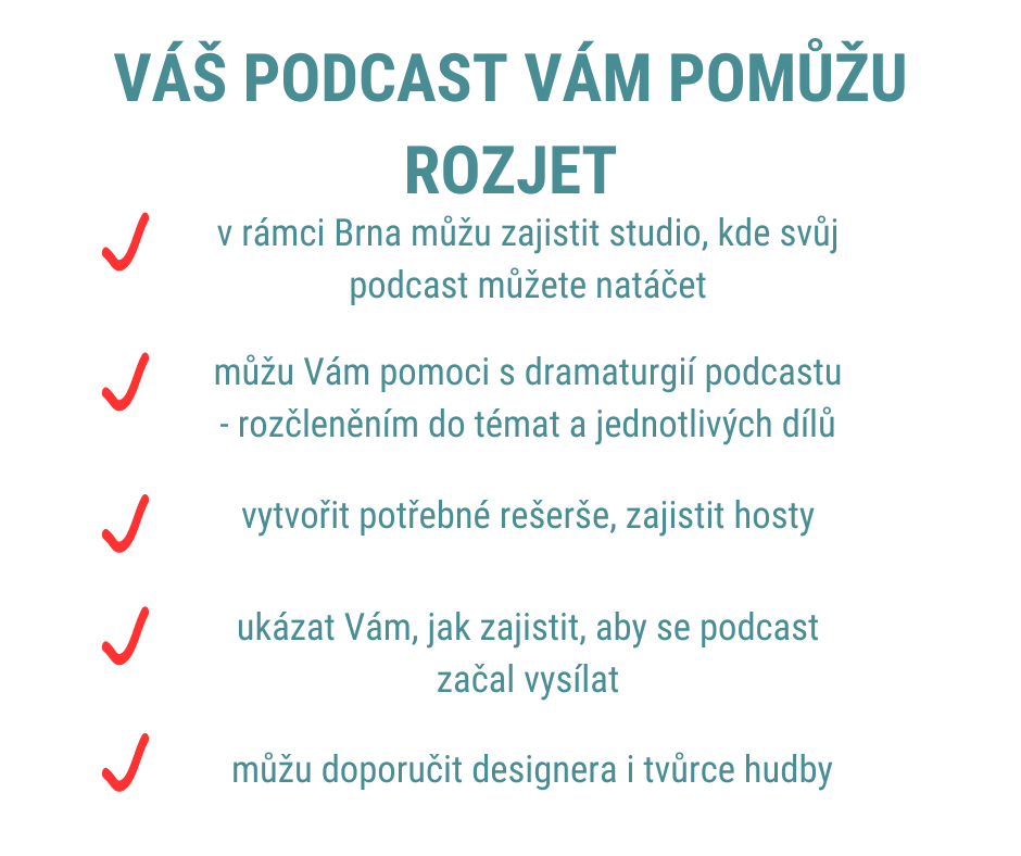 Chcete svůj audiopodcast? S čím Vám můžu pomoci konkrétně já? Váš podcast můžu moderovat. Váš podcast Vám můžu pomoci rozjet. Váš podcast můžu produkovat.